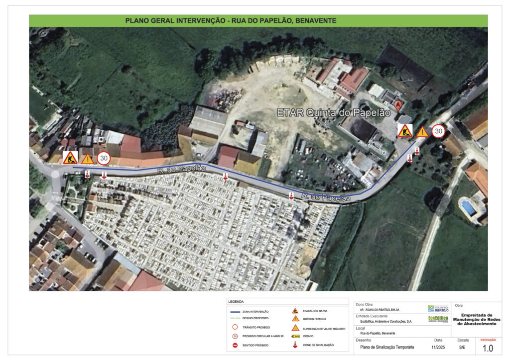 A empresa “Águas do Ribatejo” informa que, na sequência de trabalhos na rede de abastecimento, poderão ocorrer constrangimentos no trânsito até à segunda semana de janeiro na Rua do Papelão, Benavente.