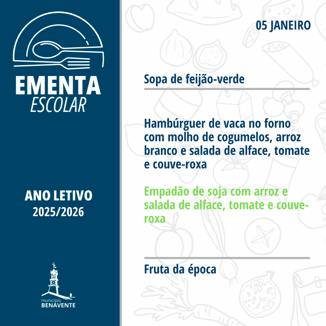 Ementa Geral - Semana 05 a 09 de janeiro 2026